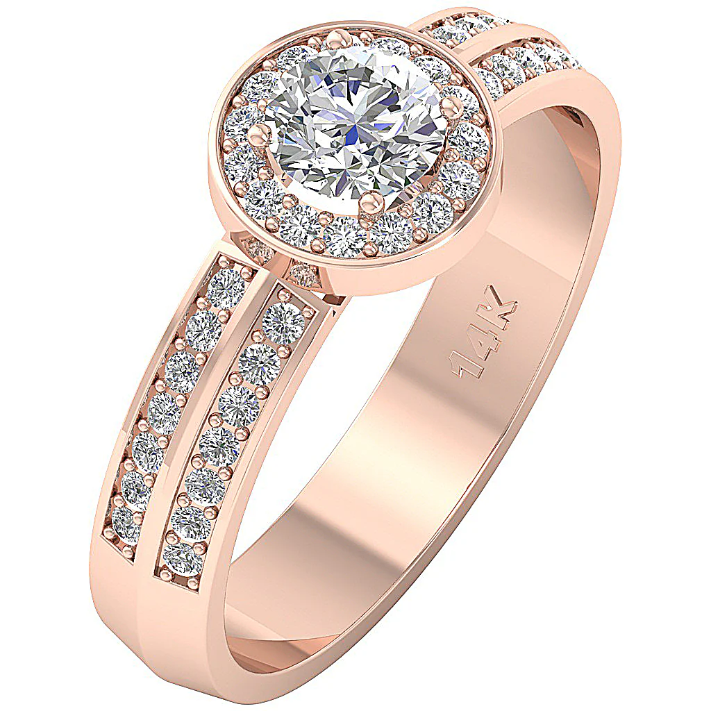 Accent Solitaire Diamond Engagement ring with One big 0.50 carat center diamond surrounded by 44 Diamonds 0.50 Carat. This ring is made with Natural Earth Mined Diamonds and Gold. The gold can be perfected in any color combination as per your request.