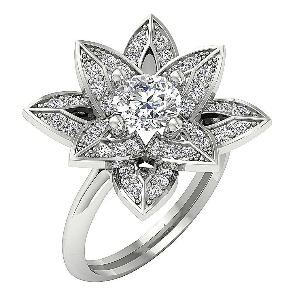 The Mack Leaf Designe 1 Carat Center Solitaire Diamond Engagement Ring For Women